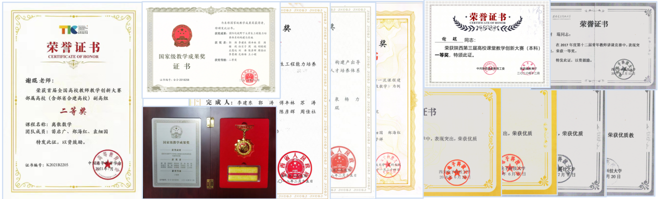矢志创新,推动教改。在长期的一线教学工作中,谢琨同志积累了大量的经验,进行了深入的人才培养和本科教学工作的探索与实践。近五年主持教育部、省校级教改项目12项,其中省级重点项目4项,作为主要完成人参与教学改革项目8项;在CSSCI、中文核心等期刊发表教改论文9篇。作为课程负责人获首批陕西省线下一流课程1门,2021年被推荐国家级线下一流课程评选(在评)。经过长期的探索实践,教学改革成绩显著:获首届全国高校教师教学创新大赛二等奖(西电唯一),国家级教学成果奖二等奖,陕西省教学成果特等奖、一等奖、二等奖各1项,陕西省高校课堂教学创新大赛一等奖,第三届全国“互联网+”老员工创新创业大赛优秀导师奖和首届全国“互联网+”老员工创新创业大赛陕西赛区优秀导师奖,陕西省高校教师微课教学比赛三等奖,BB贝博艾弗森第十二届讲课竞赛一等奖,BB贝博艾弗森优秀教学质量奖一等奖等校级以上教学奖项近30项。