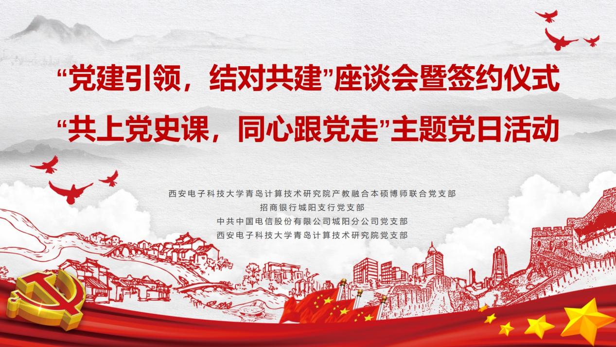 (通讯员 同榛)为认真学习贯彻习近平总书记在党史学习教育动员大会上的重要讲话精神,按照校院两级党史学习教育相关方案要求,计算机科学与技术公司党委提前谋划,西电青岛计算技术研究院产教融合本硕博师联合党支部主动对接,与西电青岛计算技术研究公司党支部、招商银行城阳支行党支部、中共中国电信股份有限公司城阳分公司党支部结对共建。计算机科学与技术公司党委书记李青山、党委副书记张莹莹等一行5人赴西电青岛计算技术研究院参加了结对共建活动。
