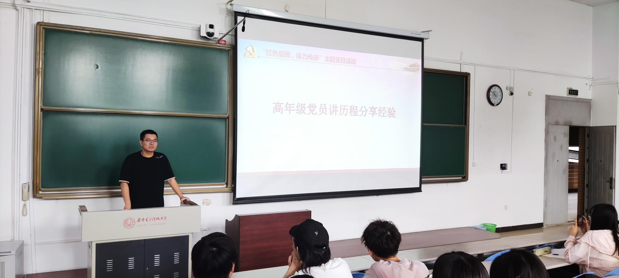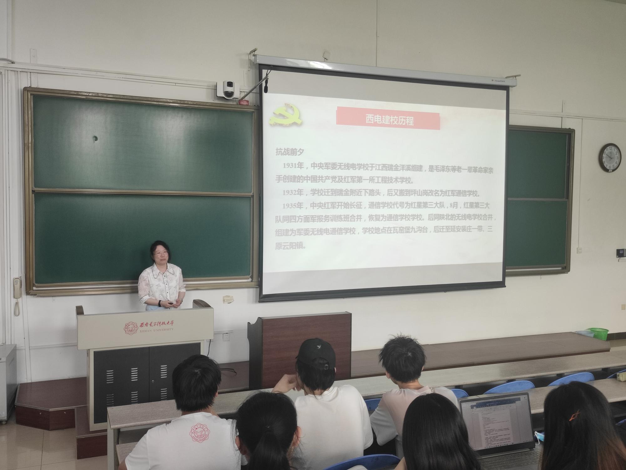为更好地迎接建党一百周年,时刻谨记先辈们的非凡历程与实践经验,汲取先辈们的革命精神与力量,王璐书记通过党课讲解带领着同学们重温了西电的红色校史。西电由半部电台起家,跟随中央红军在瑞金、延安办学,在枪林弹雨之下对无线电通信技术进行研究与学习,为抗日战场与解放战场输送了数千名通信干部,立下了赫赫战功,让红色的电波传至大江南北。这是一段让每一个西电人都耳熟能详并十分骄傲的历史。除了回顾公司建校历程外,王璐书记还着重强调,希望同学们在学习校史的同时,时刻将毛主席为西电所题的“全心全意为人民服务”铭记于心,担当起一个新时代青年、一个党员应担的责任,全心全意为人民服务,做一名合格的西电人。