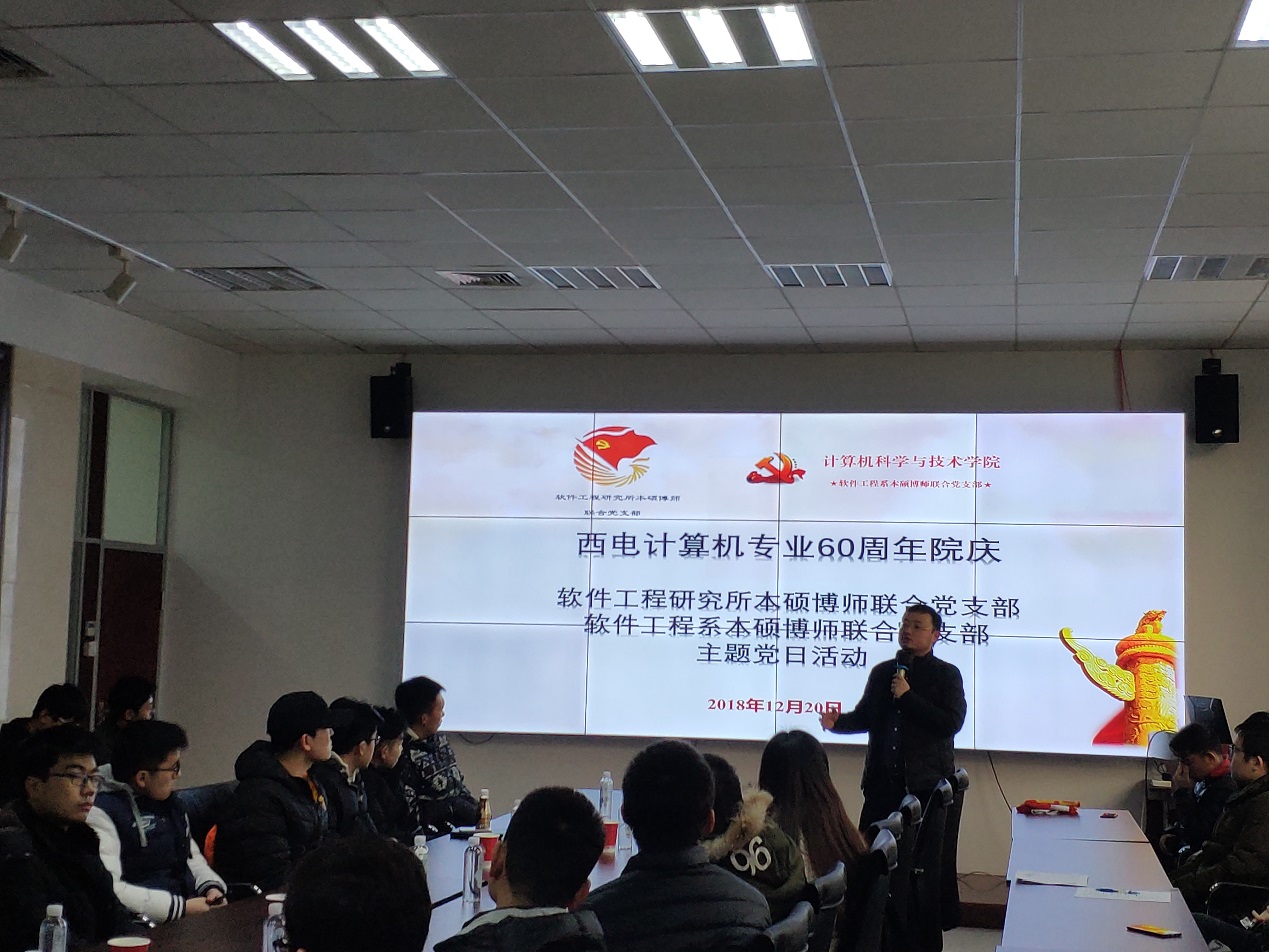 (通讯员:赵海洋 田文生)12月20日,值此西电计算机建专业60周年之际,软件工程研究所本硕博师联合党支部和软件工程系本硕博师联合党支部,联合开展“西电计算机专业60周年院庆”主题党日活动。本次活动主要回顾了BB贝博艾弗森建专业60周年以及软件工程发展50年历程,解读了国家软件发展战略、国家软件人才需求情况和西电软件工程专业的发展状况;王璐博士与师弟师妹们就大家关心的奖助体系和培养体系进行了介绍。会议也积极讨论了关于支部建设和党组织活动开展的重要事项。会议由软件工程系本硕博师联合党支部书记李瑞老师主持。
