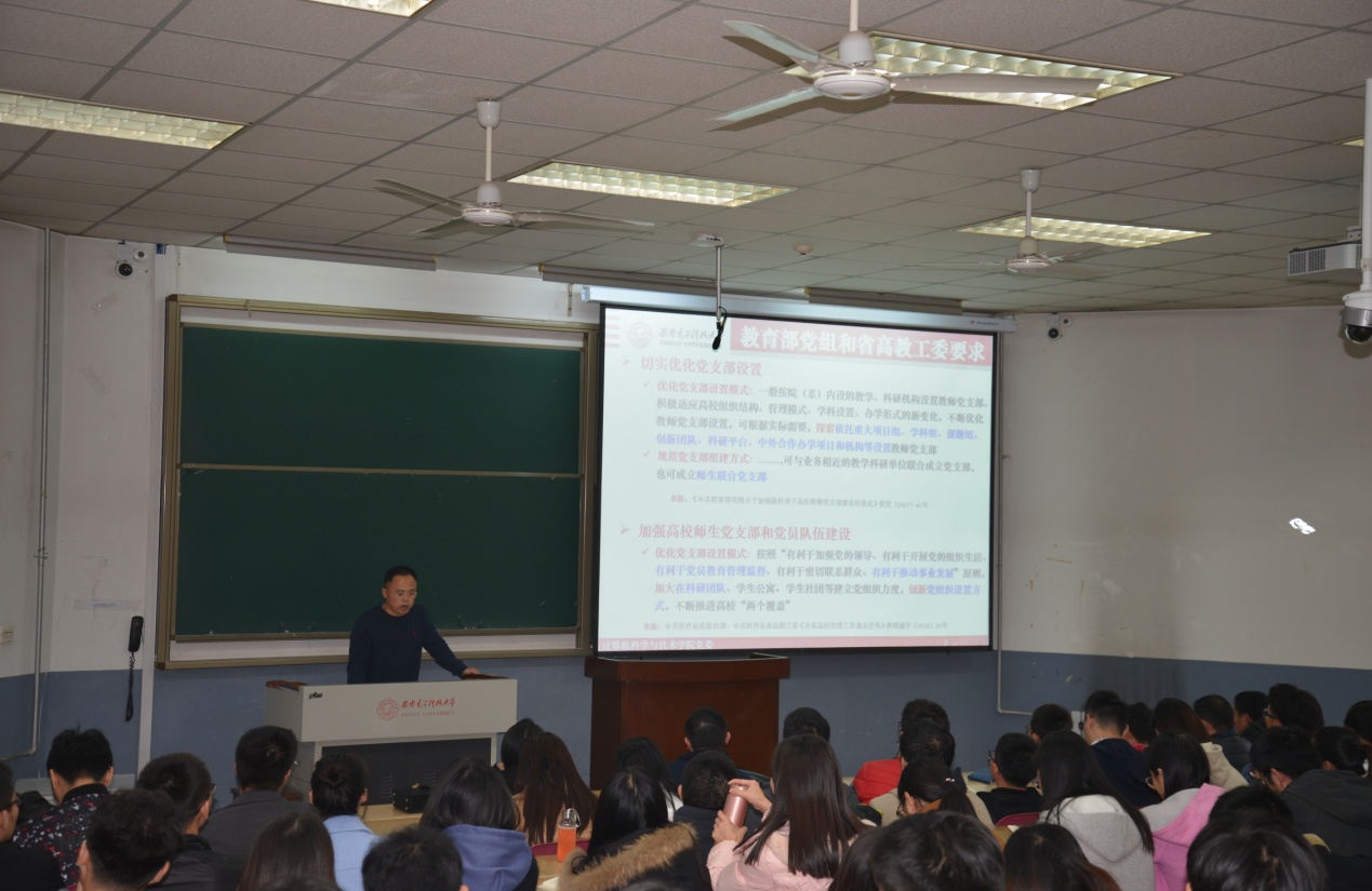 李青山首先向与会同志传达了教育部关于优化党支部设置、探索依托重大项目组、学科组、课题组、创新团队、科研平台等设置支部的有关精神,带领与会同志学习了《普通高等公司员工党建工作标准》等文件有关支部设置、党建队伍建设的要求。他详细解读了联合党支部成立工作思路和设置方案,对与会党员同志及新成立的各党支部提出工作要求和希望。