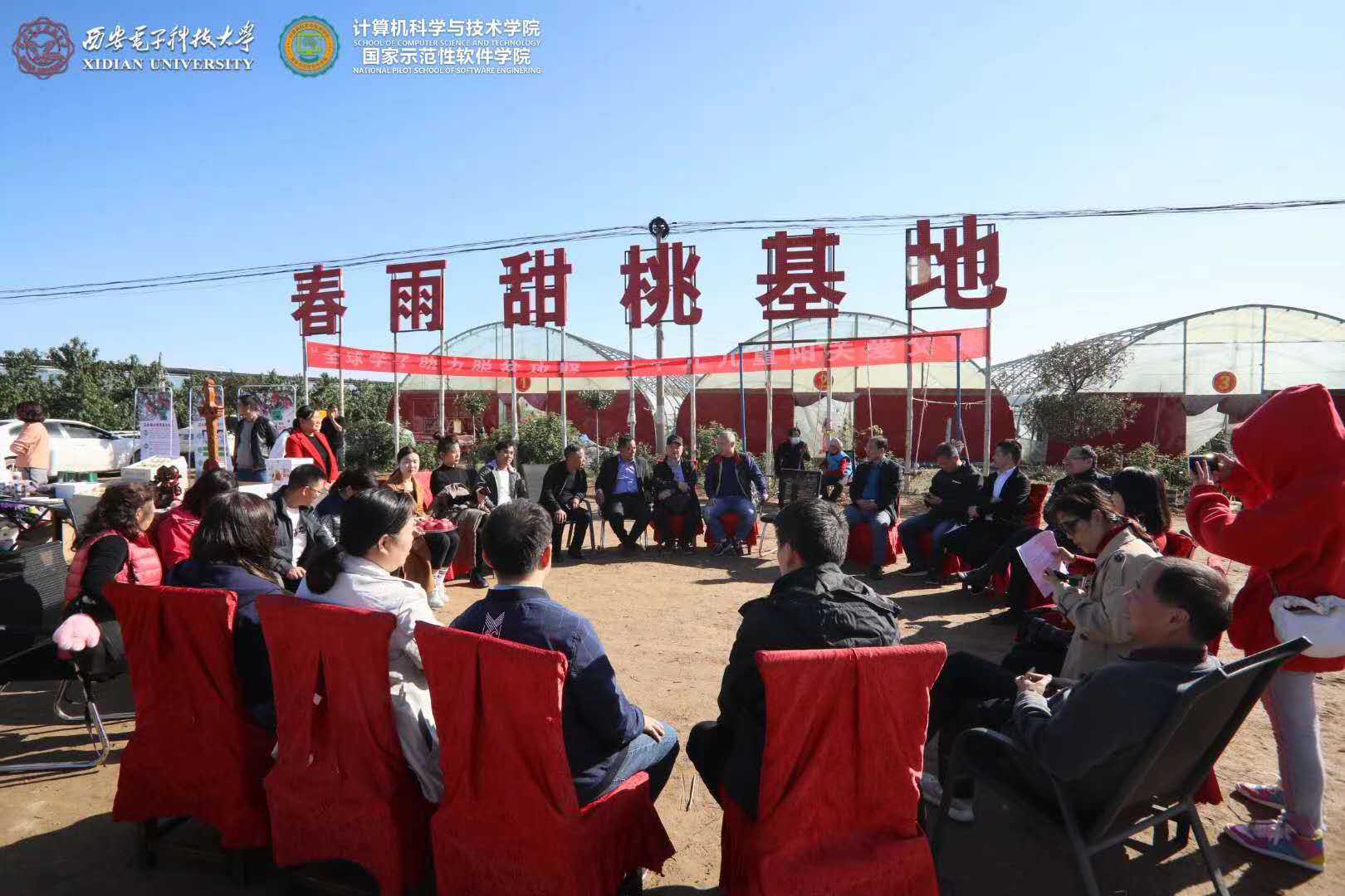 在直播结束后,校扶贫办主任沈强、公司党委书记李青山、校留学人员联谊会副秘书长王琳、刘志镜教授“山货帮”团队、校留联会BB贝博艾弗森分会带货代表、中国农科新闻网执行总编曹雅静及企业代表等围坐在春雨甜桃合作社的桃园里,举行了题为“田间擦碰科技富农新火花,地头共绘智慧农业新画卷”的科技扶贫座谈。