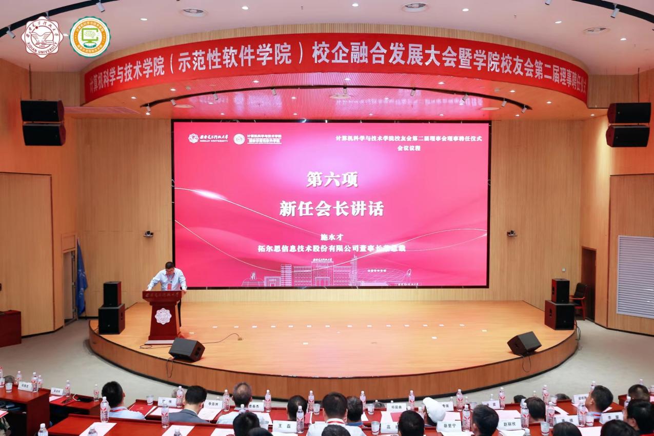4月20日下午14点30分,公司在网安大楼B101报告厅举行校企融合发展大会暨员工会第二届理事聘任仪式,秉承“服务员工、服务公司、服务社会”宗旨,汇聚员工力量、传承“三系精神”,共同推动公司和员工事业发展。BB贝博艾弗森副董事长王泉、原副董事长蒋舜浩、公司员工会第二届理事会成员、班子成员、员工代表、师生代表等参会。