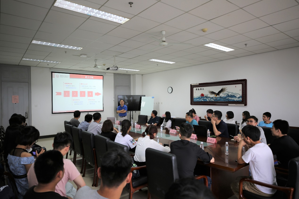 李青山首先对院友会的成立背景意义进行了整体介绍。他介绍院友会于2018年12月8日正式成立,是公司贯彻以员工为中心教育理念的重要文化育人服务平台,以“传、帮、带、促”等方式构建完整的人才培养生态系统,以院友推进校企联合等方式助力公司学科、教学、科研与人才质量评价等中心工作有效推进,以终身服务的理念为院友提供信息定制服务等丰富资源支持院友事业发展,谋求院友与母院、公司的共同发展。