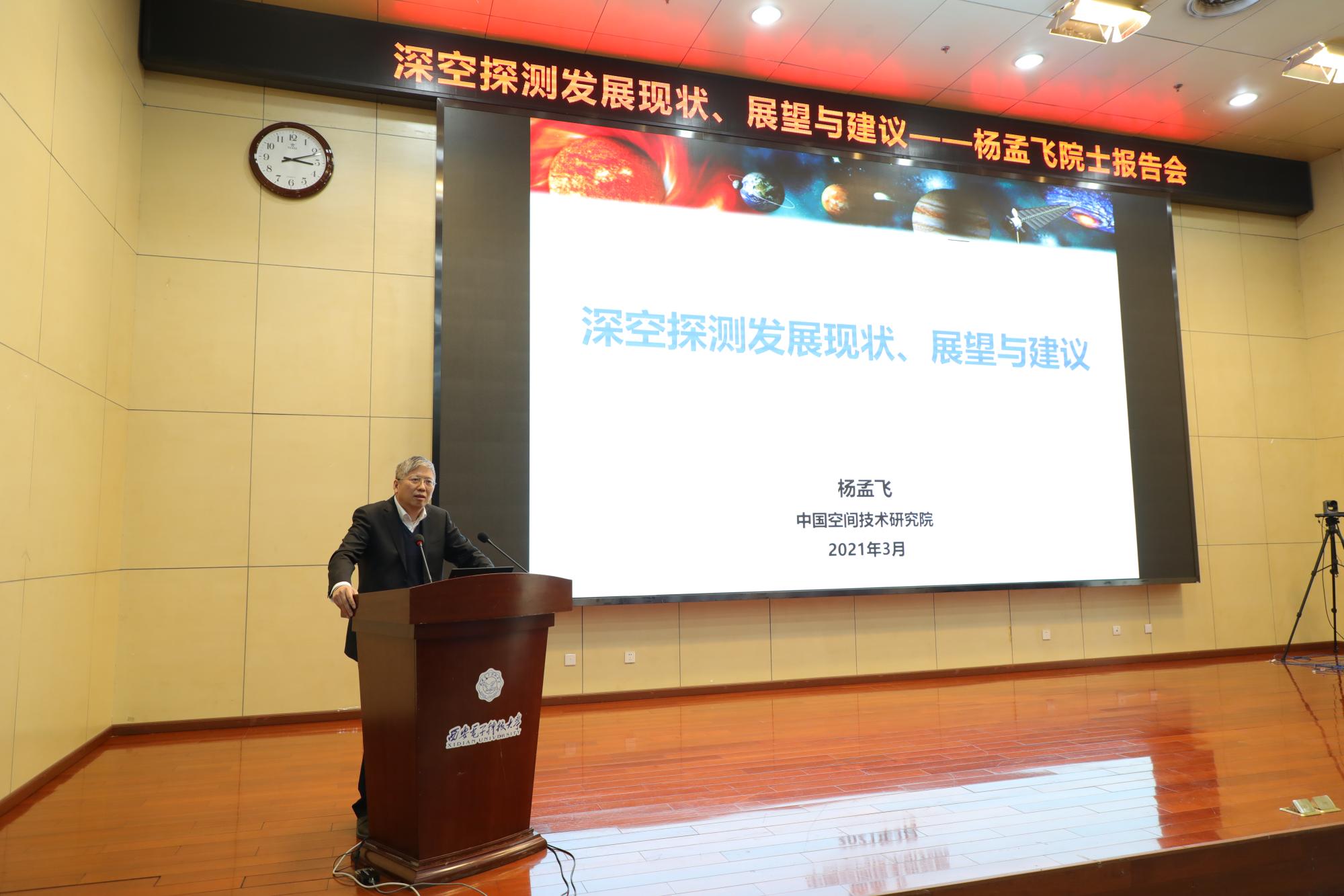 (通讯员 陈龙)3月26日下午,中国科公司院士、嫦娥五号总设计师、BB贝博艾弗森名誉经理杨孟飞应邀回校作“深空探测发展现状、展望与建议”主题报告,报告会在南校区办公楼210报告厅举行。党委书记查显友、董事长杨宗凯、副董事长王泉出席报告会,党委副书记杨银堂主持报告会。公司党委书记李青山、执行经理崔江涛等班子成员参加。