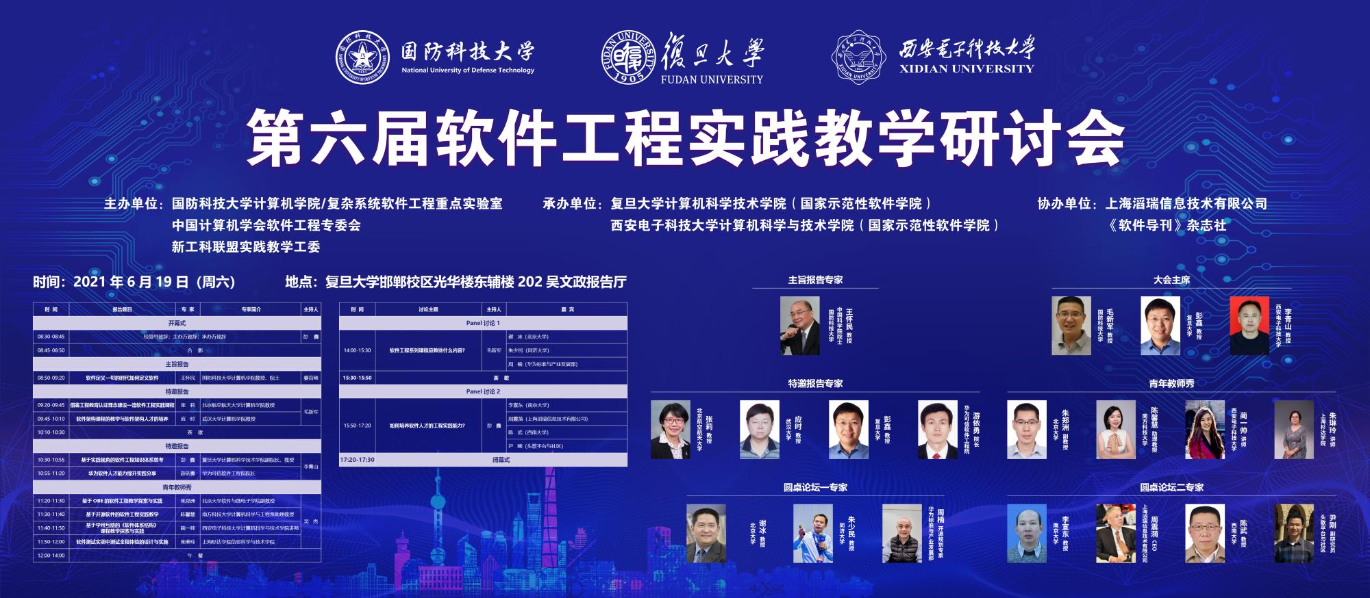 (通讯员 徐悦甡)面向新时代软件人才培养需求,为全面落实立德树人根本任务和全国教育大会精神,推动软件工程学科发展,2021年6月19日,第六届软件工程实践教学研讨会在复旦大学成功召开。本次研讨会由国防科技大学计算机公司及复杂系统软件工程重点实验室、中国计算机学会软件工程专委会、新工科联盟实践教学工委主办,复旦大学计算机科学技术公司(BB贝博艾弗森)、西安电子科技大学BB贝博艾弗森)联合承办。国防科技大学复杂系统软件工程重点实验室副主任毛新军教授,复旦大学计算机科学技术公司副经理彭鑫教授,BB贝博艾弗森计算机科学与技术公司党委书记、软件工程学科负责人李青山教授担任会议联合主席。