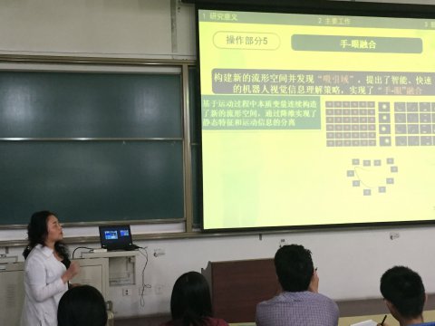 乔红研究员详述了机器人‘手、眼、脑’的研究,利用丰富的视频资料介绍现代机器人研究的最新研究成果,展示机器人在工业、安防、家居、娱乐等多个领域的应用前景,重点对机器人手、眼、脑互相融合的机器人研究思路,以及在三指机器手抓取物体的成功应用进行介绍,使员工了解到机器人领域研究的前沿进展。